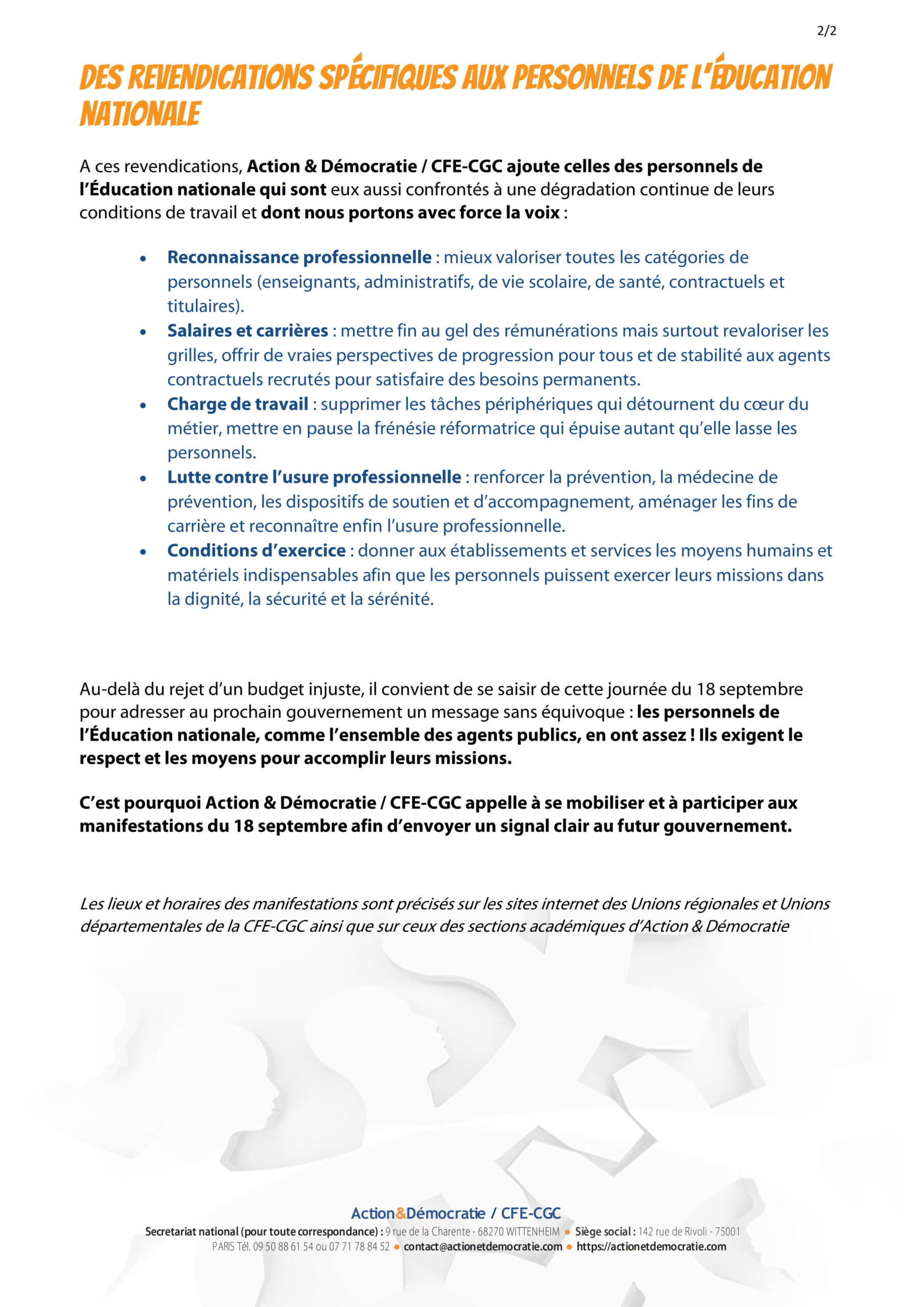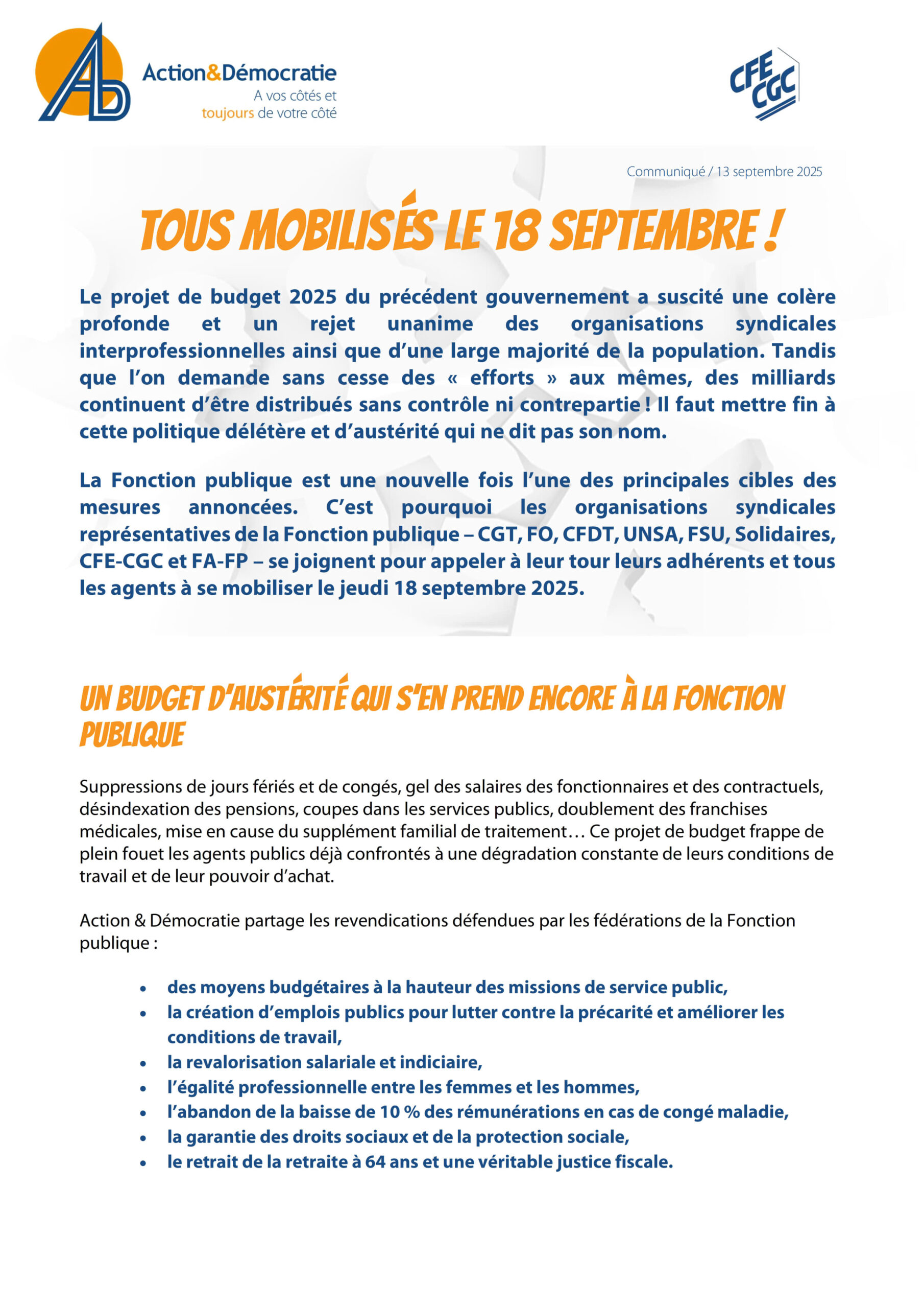 Le 28 juillet, le Conseil d’État a refusé de transmettre notre QPC sur la baisse de 10 % de l’indemnisation des arrêts maladie. Action & Démocratie poursuit son combat contre une réforme injuste qui rompt l’égalité, fragilise la santé des agents et pénalise les femmes enceintes. Notre recours au fond pour défendre les personnels de l’Éducation nationale, qui sont parmi les moins absents et les plus exposés aux maladies, est toujours en cours.