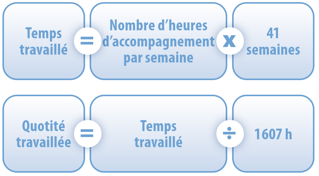 Il faut ensuite diviser le résultat par le nombre d’heures dues par un agent travaillant à temps plein, soit 1 607.